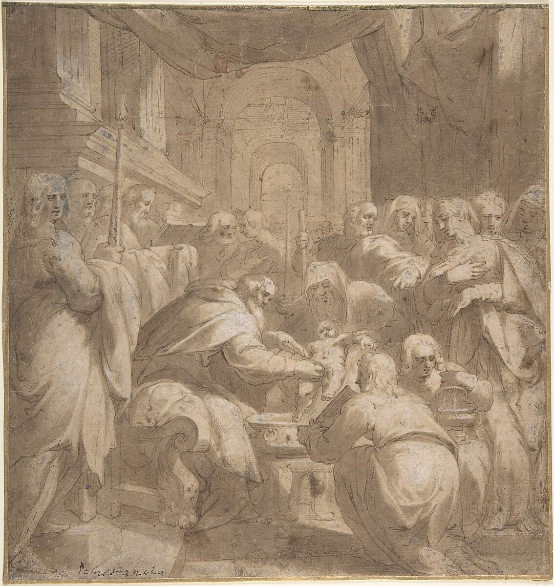 - Medium: Pen and brown ink, brush and brown wash, over traces of black chalk, heightened with white