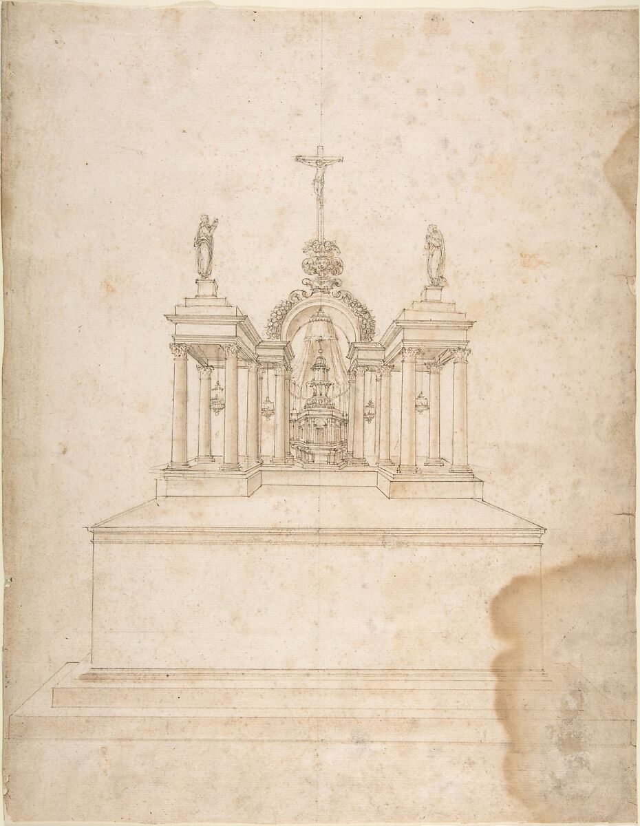 - Title: Design for a Tabernacle Surmounted by Christ on the Cross and Praying Figures (the Virgin and Saint John?)