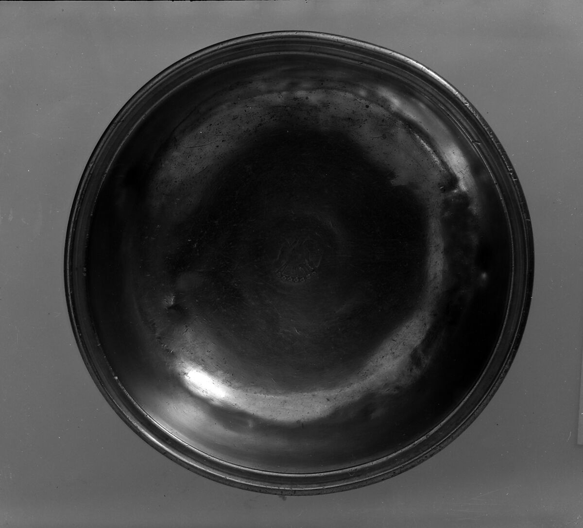 This basin is stamped with an American eagle surrounded by stars. Touches (or maker's marks) often featured an eagle, this type of mark supplanting, after the Revolution, those with a crown or other symbol of England.