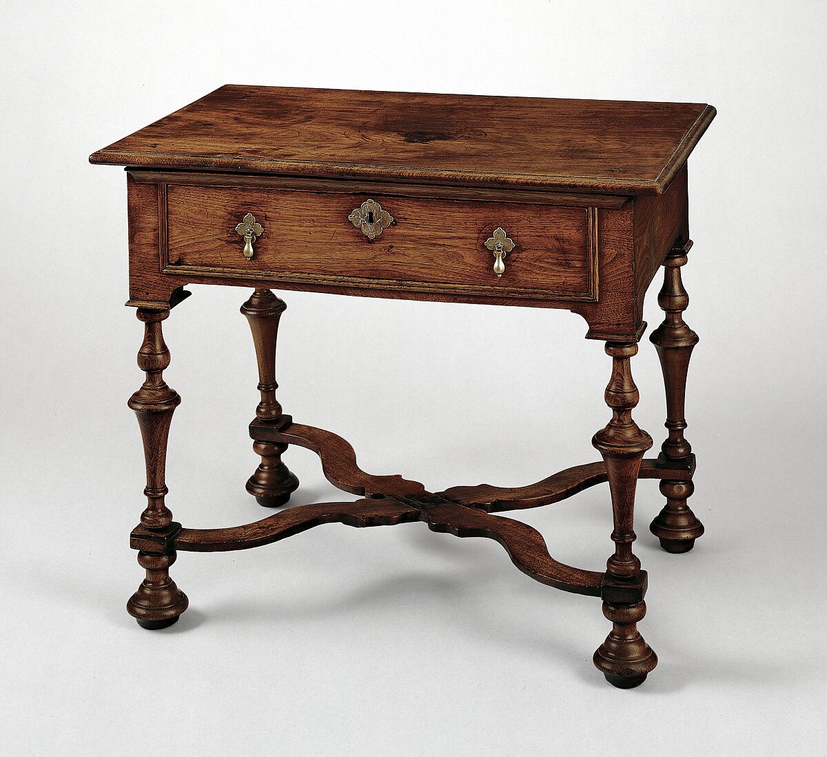 The legs and feet of this table have a distinctive pattern found only in Philadelphia furniture in the William and Mary style. Notably they closely match those on a high chest and dressing table at the Philadelphia Museum of Art that Caspar Wistar ordered in 1726 from Philadelphia cabinetmaker John Head (d. 1754).