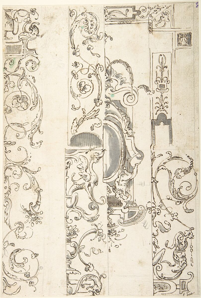 - Title: Sheet with Various Studies of Candelabra Grotesques, Foliage and a Cartouche