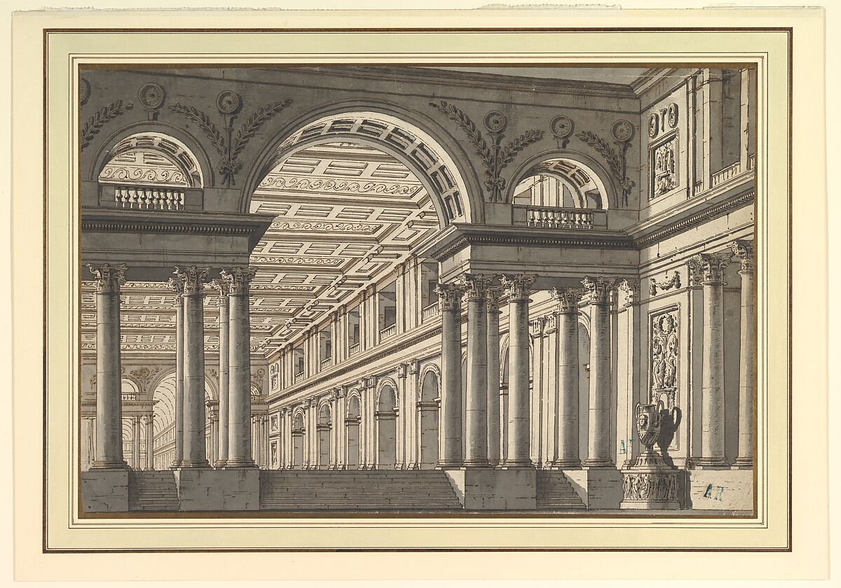 - Title: Design for a Stage Set: Classical Arcaded Gallery with Triumphal Arch Motif