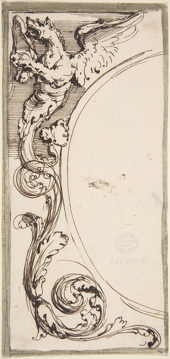 - Title: Left Half of a Cartouche with Griffin and Acanthus Scroll