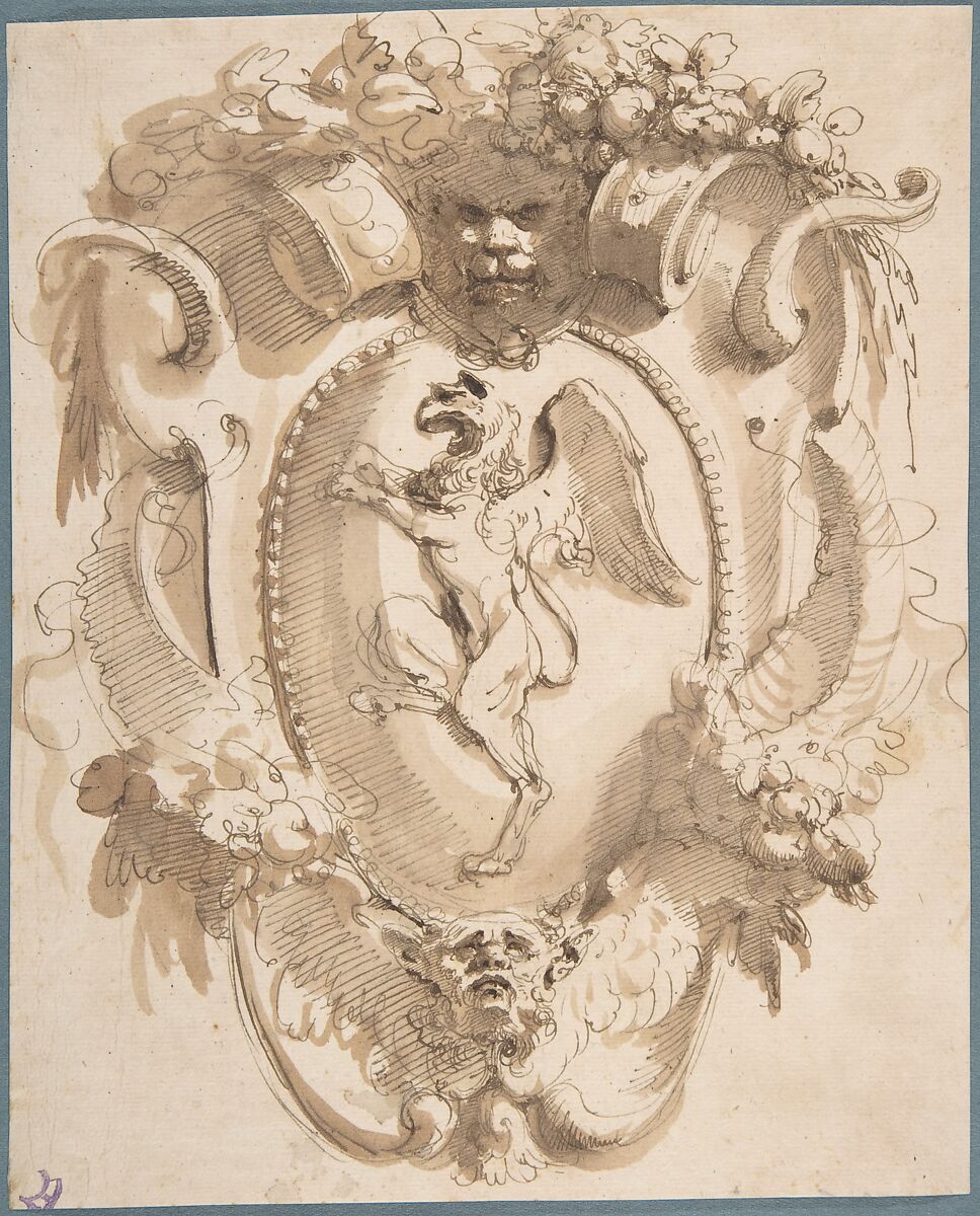 - Title: Design for a Cartouche with a Coat of Arms containing a Griffin