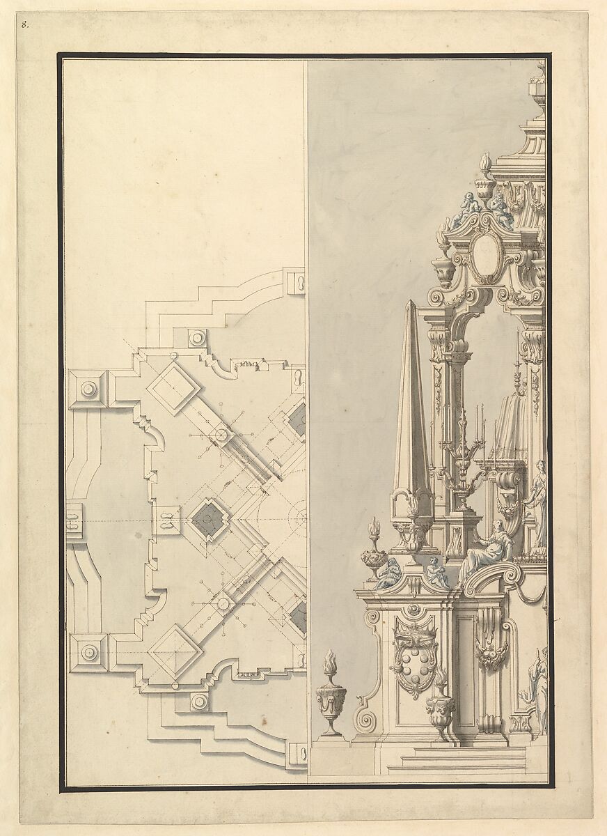 - Title: Half Ground Plan and Half Elevation of a Catafalque for Cosimo III dei Medici, Grand Duke of Tuscany (1642–1723)