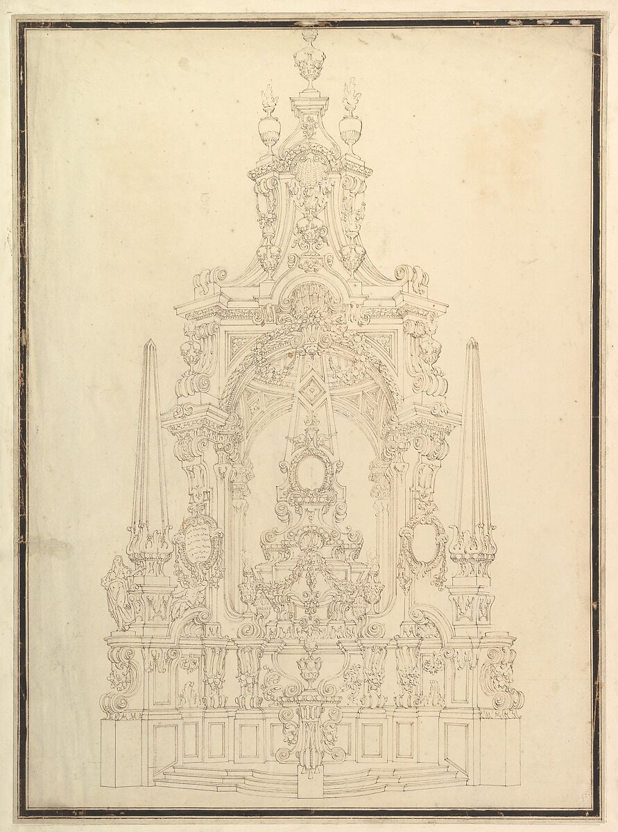 - Title: Elevation of a Catafalque: Obelisks at the Corners and One in Center