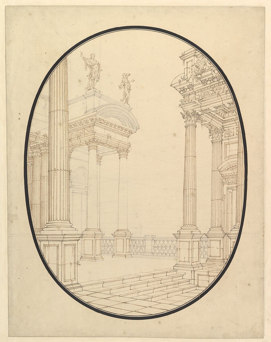 - Title: Architectural Perspective, in an Oval: Porch of a Palace with Corinthian Columns