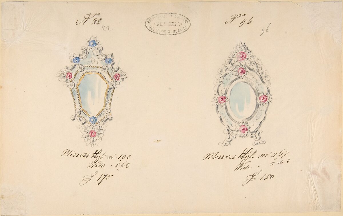 - Title: One of Twenty-Three Sheets of Drawings of Glassware (Mirrors, Chandeliers, Goblets, etc.)