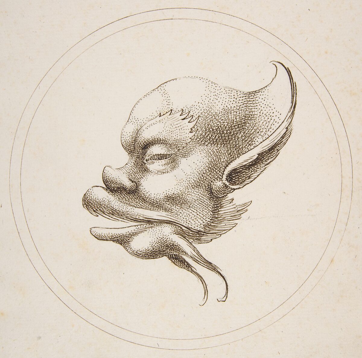Grotesque Head With a Large Eyebrow Looking to the Left Within a Circle