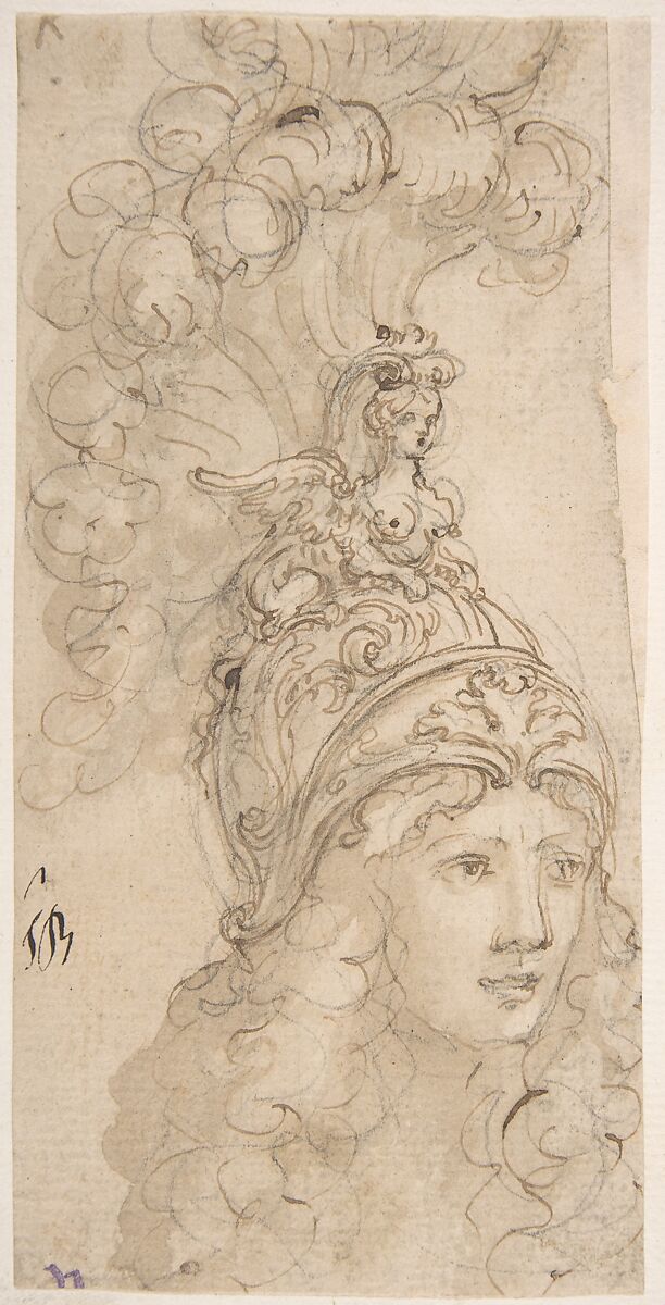 - Title: Design for a Helmet with a Sphinx presented in 3/4 View