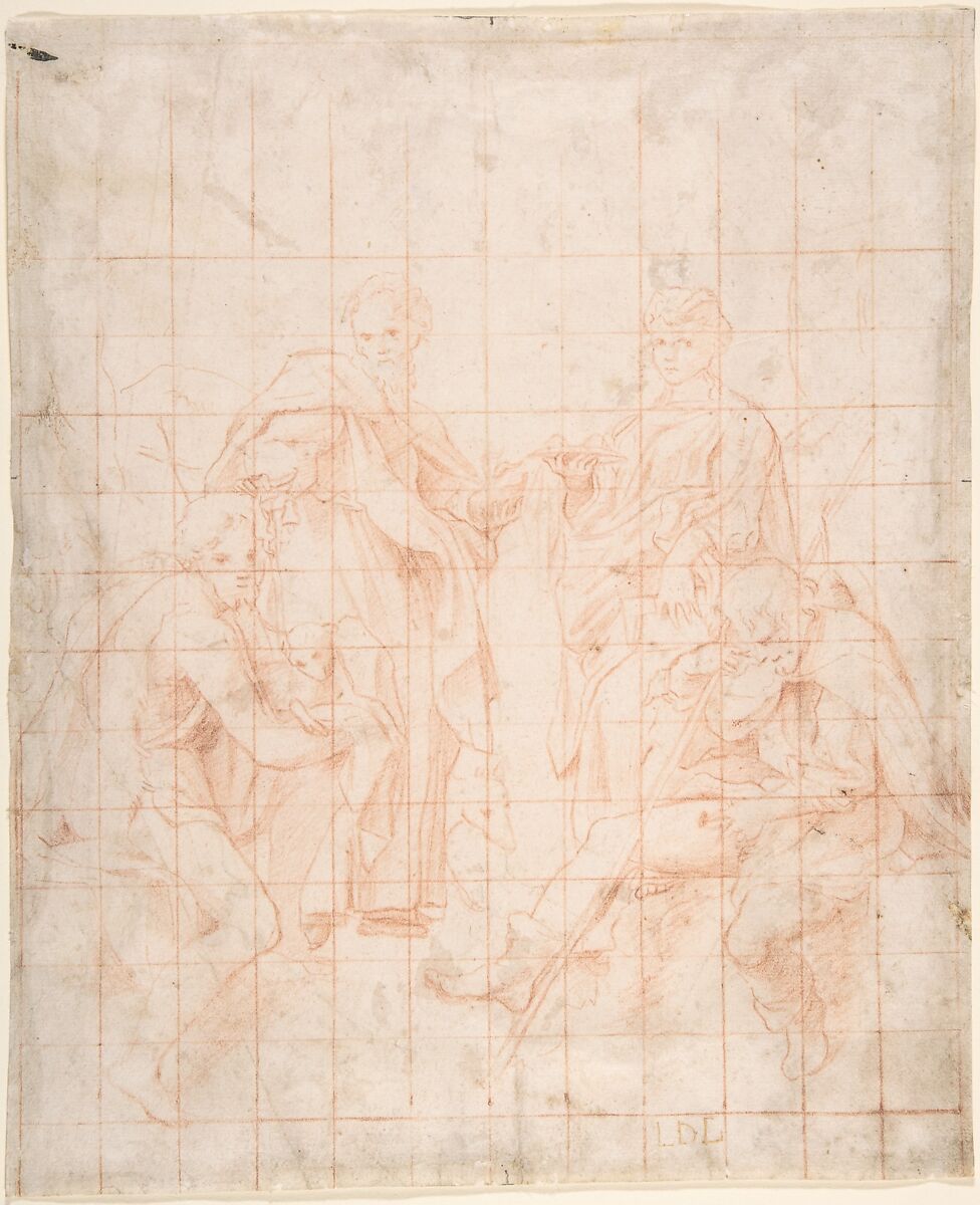 - Medium: Red chalk; squared in red chalk