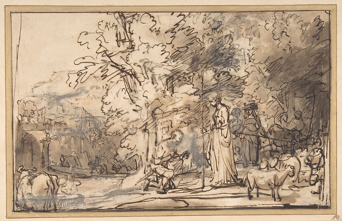 - Medium: Pen and brown ink, brush and brown wash, heightened with white gouache, with framing line in pen and brown ink