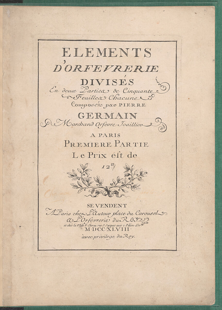- Title: Elements d'Orfevrerie Divisés en deux Parties de Cinquante Feuilles