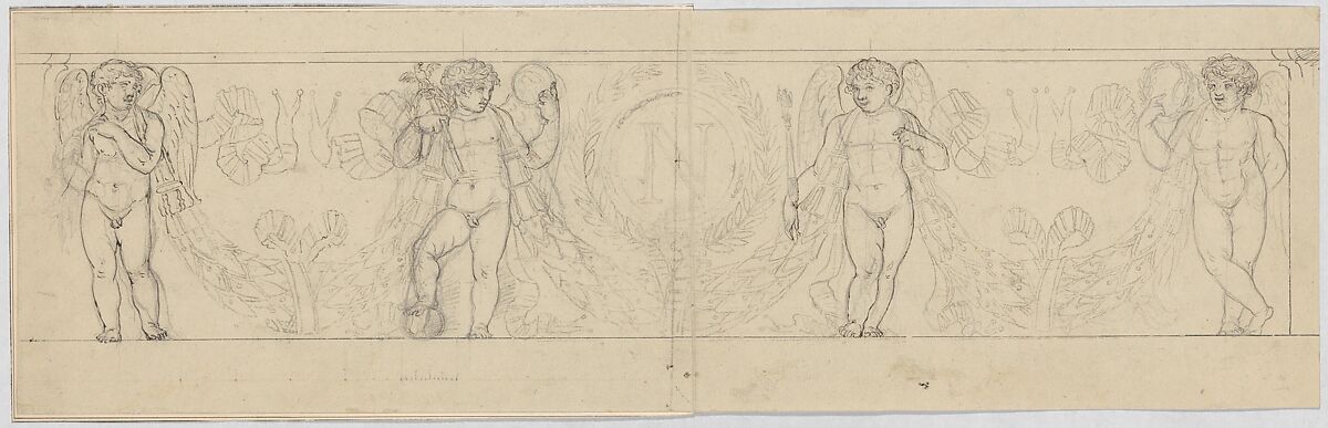 - Title: Design for a Frieze with Putti Supporting a Garland, with the inital "N" inside a Wreath (related to the Arc du Carrousel)
