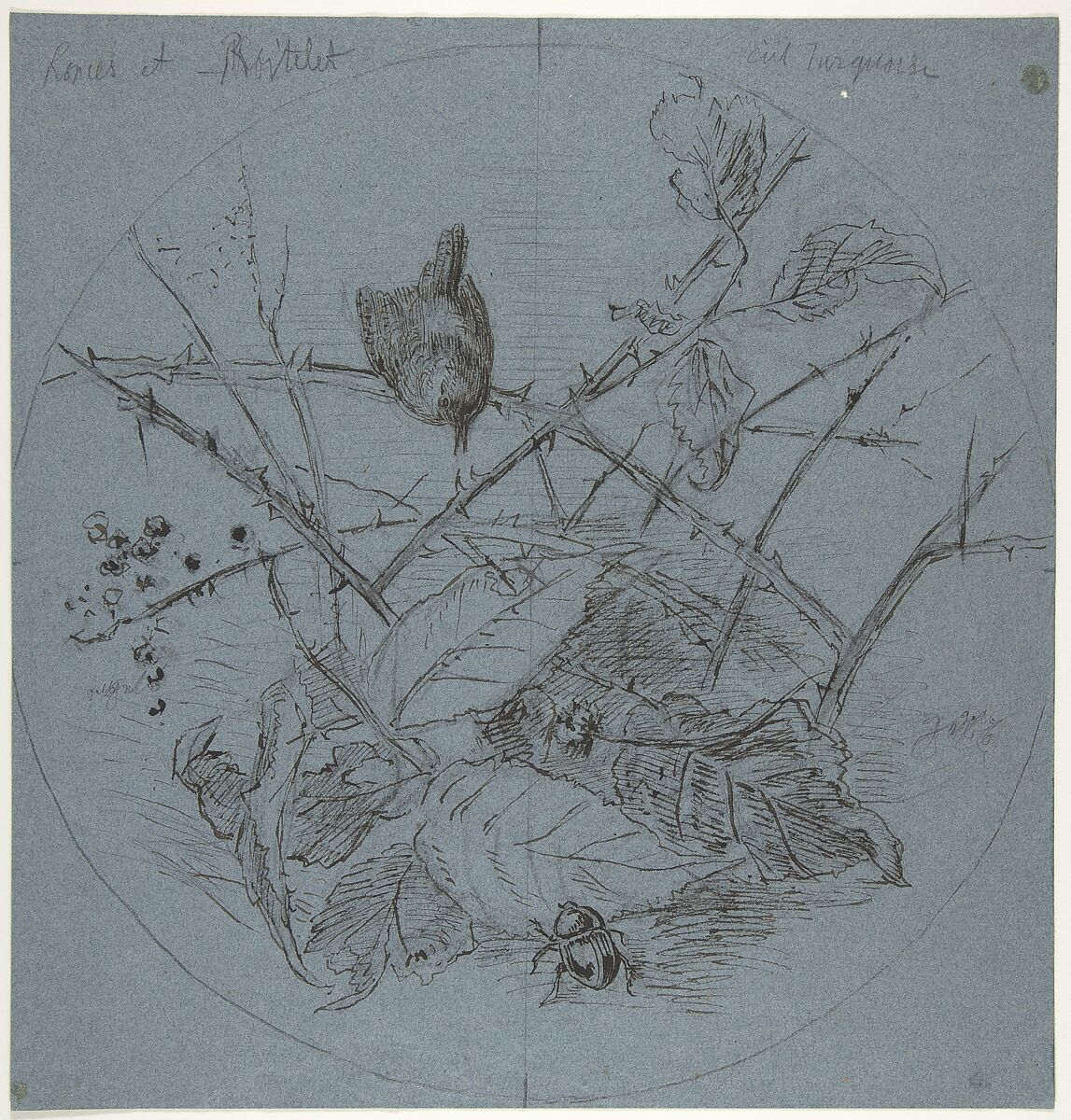 - Medium: Pen and black ink, over black chalk on blue paper