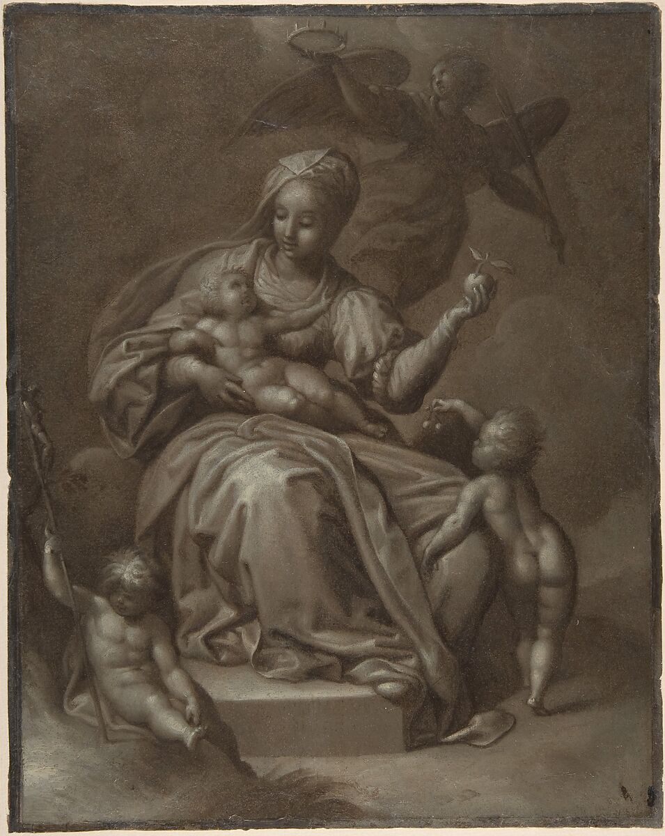 The oil sketch is part of a small group of works, linked to paintings generally attributed to Jacob De Backer. Very little is known about this enigmatic Antwerp artist, who may have been the leading member of a busy workshop that turned out religious, mythological, and allegorical compositions. Many of these exist in multiple versions, and it is possible that sketches like the one shown here served as models from which subsequent iterations were derived. It is also possible, however, that the work was considered a finished painting in its own right, or that it served as a ricordo of a canvas or panel version after it had left the workshop. The best painting related to the Museum's sketch is now preserved in a church at Boissise-la-Bertrand, south of Paris.[5]