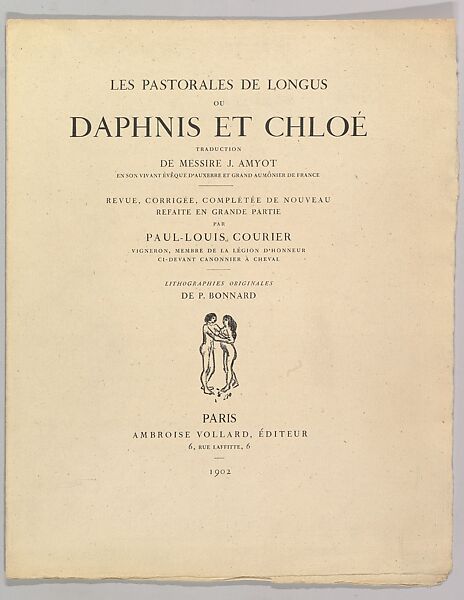 - Title: Proof of front matter, from "Daphnis et Chloe" by Longus