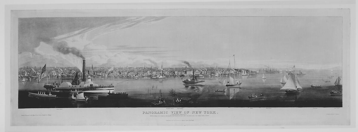 This beautiful aquatint was executed about 1840 but was reissued in 1844 as a companion piece to "Panoramic View of New York Taken from the East River." When he arrived in America in 1839, Robert Havell was already celebrated for the engravings he produced with his father for John James Audubon's famous "The Birds of America." Living in New York, Havell continued to produce high-quality prints like these views, and also established himself as a landscape painter working in the Hudson River school style.