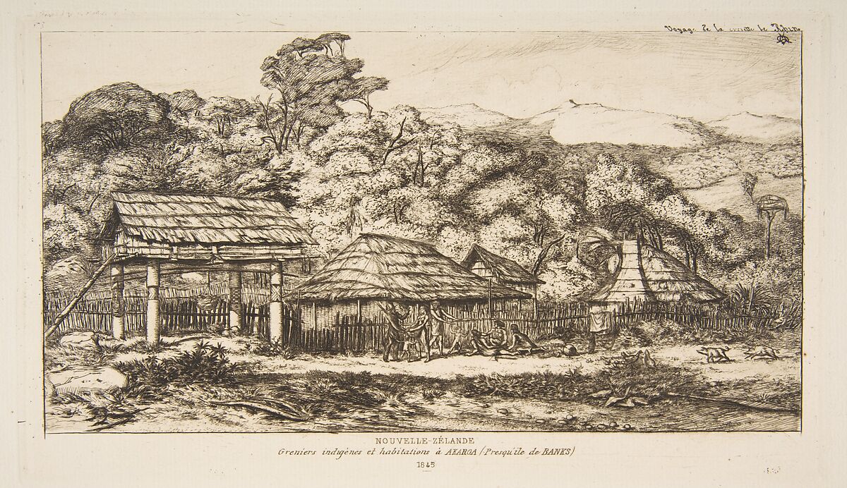 - Title: Native Barns and Huts at Akaroa, Banks Peninsula, 1845, from "The Voyage to New Zealand (1842–46)"