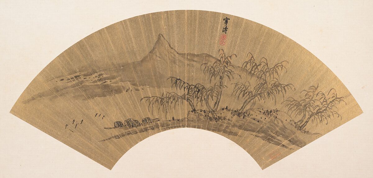 - Medium: Folding fan mounted as an album leaf; ink on gold paper