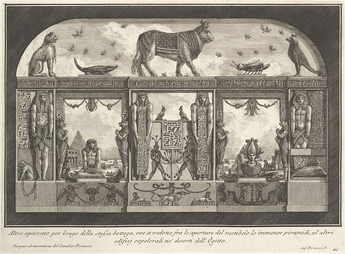 - Title: Egyptian decoration of the Caffè degli Inglesi: Animals on the cornice, including a bull at the center, from "Diverse Maniere d'adornare i cammini..." (Diverse Ways of ornamenting chimneypieces...)