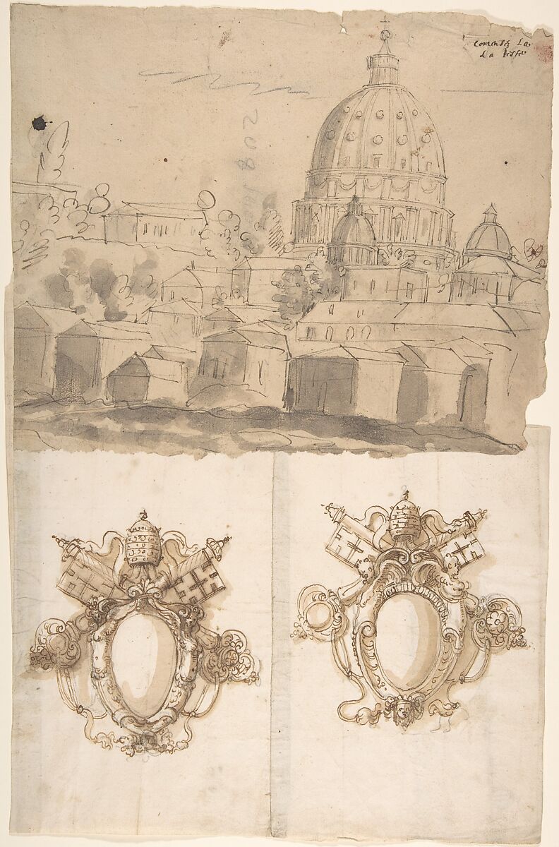 - Title: St. Peter's, view from the southeast; Unidentified, blank, papal escutcheons (recto) blank (verso)