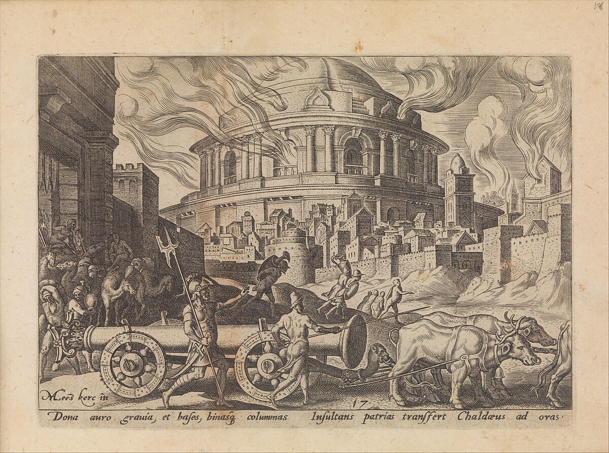 - Title: The Chaldeans Carrying Away the Pillars of the Temple of Jerusalem, from The Disasters of the Jewish People, plate 17