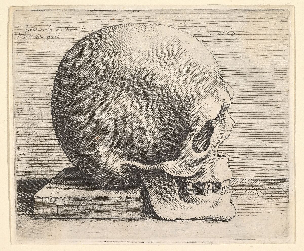 - Title: Skull in profile to right