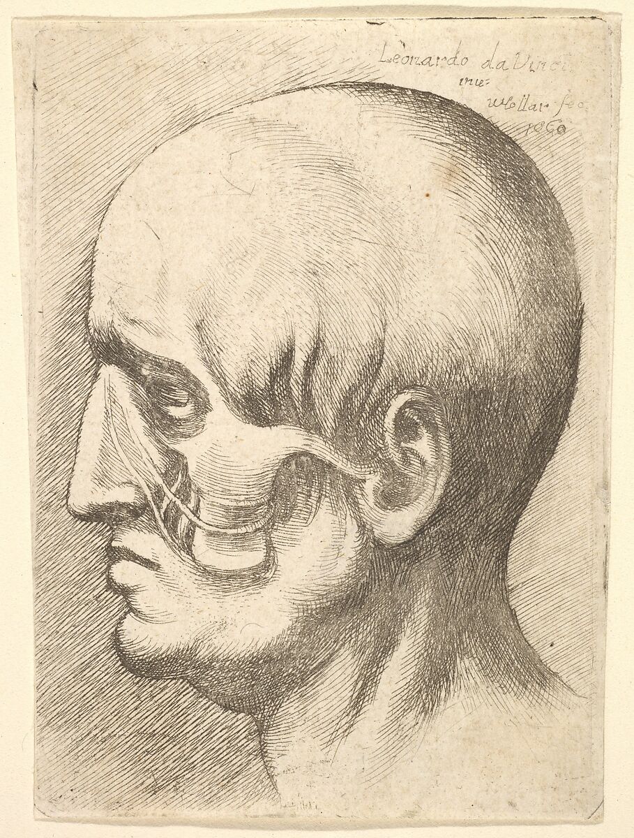 Male head in profile to left with muscles exposed. after Leonardo da Vinci