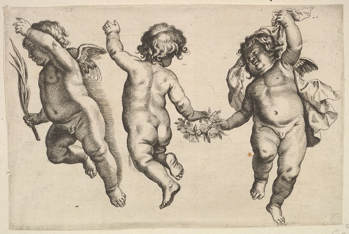 - Title: Two cherubs dancing with a small boy, not by Hollar