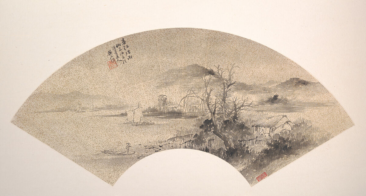 - Medium: Folding fan mounted as an album leaf; ink on gold-flecked paper