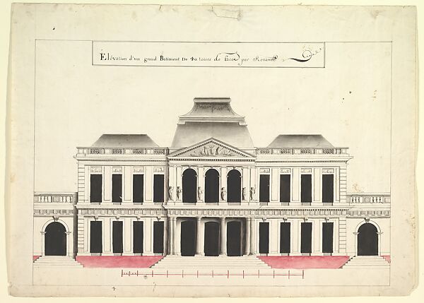 - Medium: Pen and gray and black ink, brush and gray, black, and rose wash