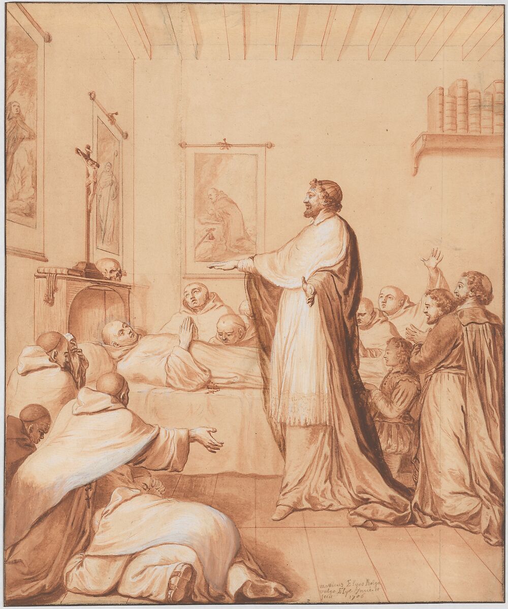 - Title: Scene 33: The Blessed Abbot, near death, receives the blessing of the pope, who sends for this purpose Cardinal d'Ossat, a close friend of the saint, whose teacher he had been; he dies in the odor of sanctity, 25 April 1600