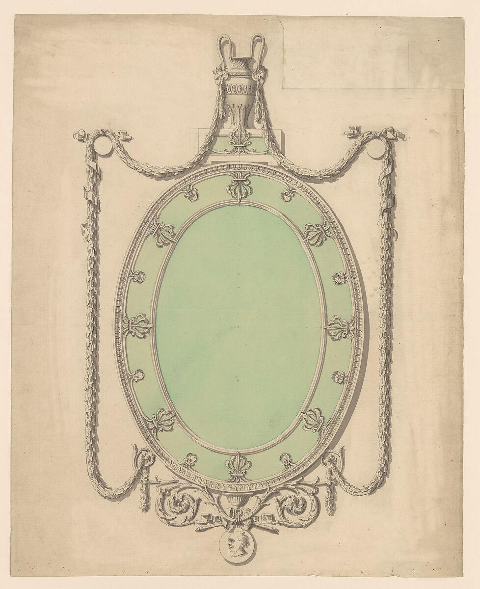 - Title: Design for an Oval Mirror, Surmounted by an Urn and Draped with Neoclassic Swags