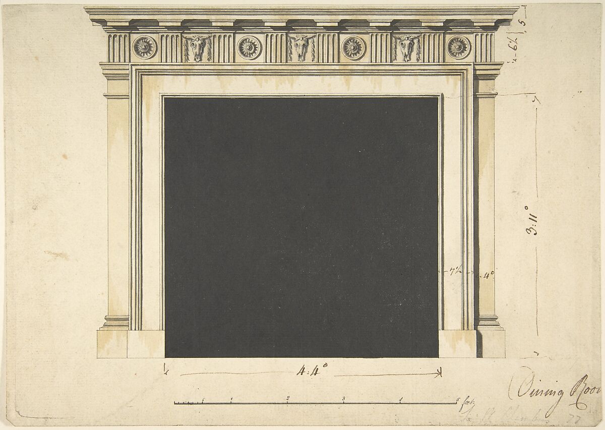 - Title: Design for a Chimneypiece with a Classical Cornice, for Ampthill Park, Bedfordshire, Dining Room