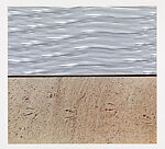 Ten Landscapes was his first solo print portfolio, and he was deeply involved with its production. He created preparatory drawings and collages, cut each screenprint stencil by hand, shot the photographs, and, to ensure that each print had the proper moiré pattern, supervised the cutting of the Rowlux (a type of plastic sheet he found in a novelty store and frequently incorporated in his art). The prints and the collage Tremaine Christmas Card (Seascape) call to mind Lichtenstein’s 1964 Landscape series of paintings and drawings in which he also engaged this traditional genre with a decidedly Pop vocabulary. Some of the Landscape prints have elements that correspond to those from picture postcards and comic-book sources (such as Landscape 1, which has details from a panel in Star Spangled War Stories), but most are imaginary views created by the artist. With these works, synthetic materials such as Mylar and Rowlux provide a contemporary, even industrial, aesthetic. Reflecting light, they create a sense of movement that corresponds to the shimmering and shifting effects of light and water.
