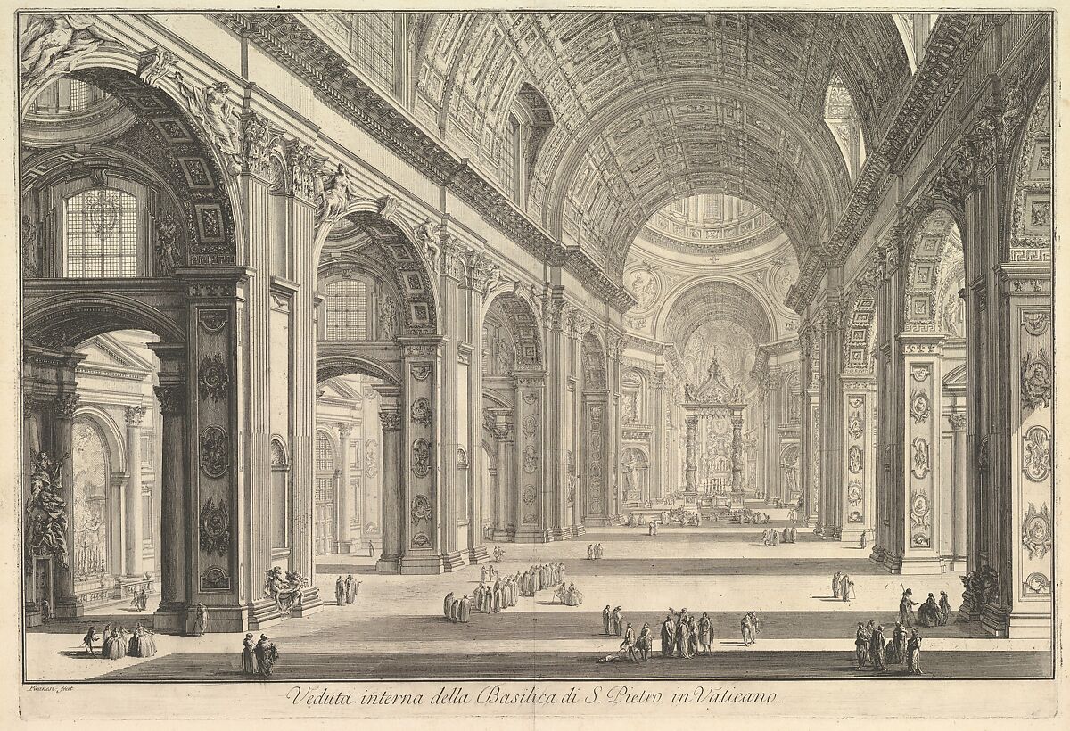 - Title: Interior view of St. Peter's Basilica in the Vatican, from "Vedute di Roma" (Roman Views)