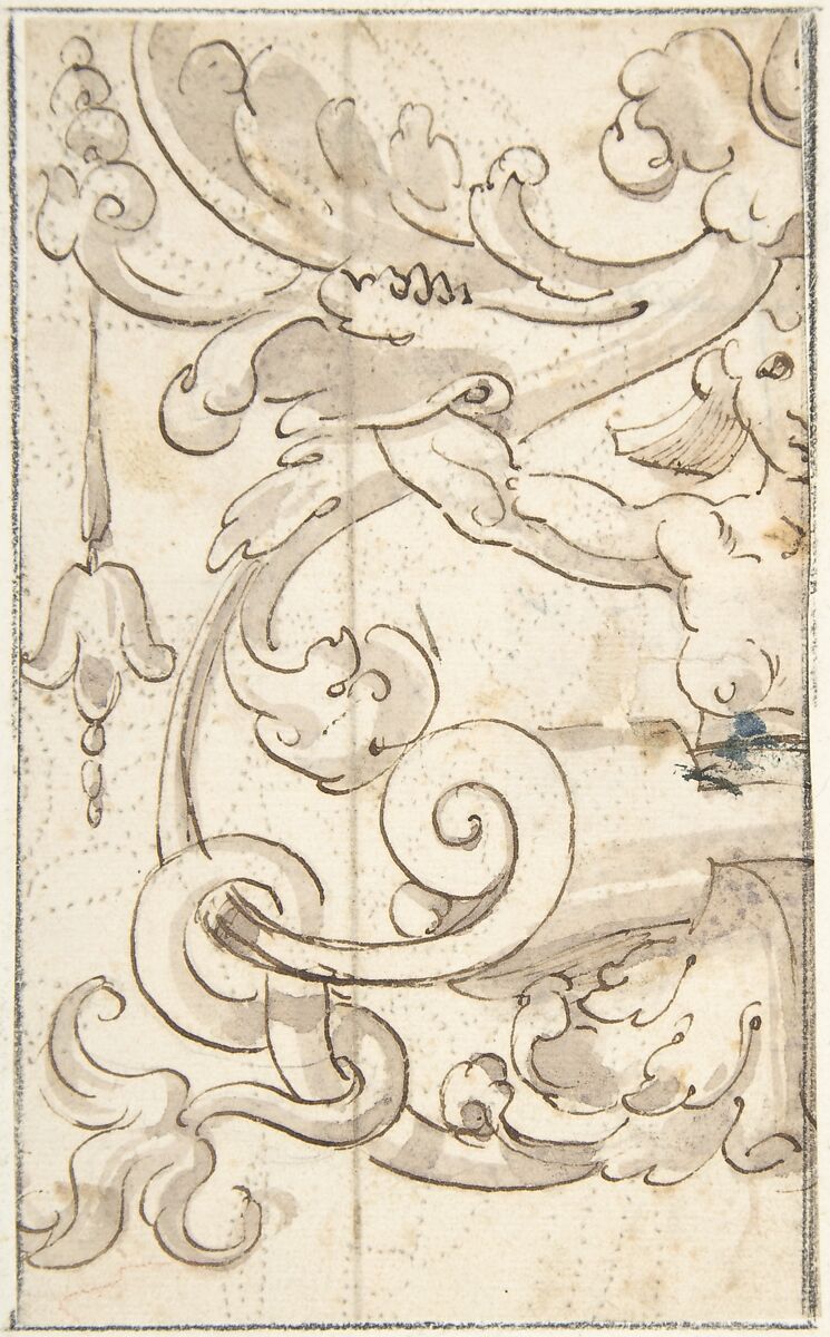 - Title: Fragment of Ornamental Drawing after the Antique; Half-harpy with Acanthus Rinceaux