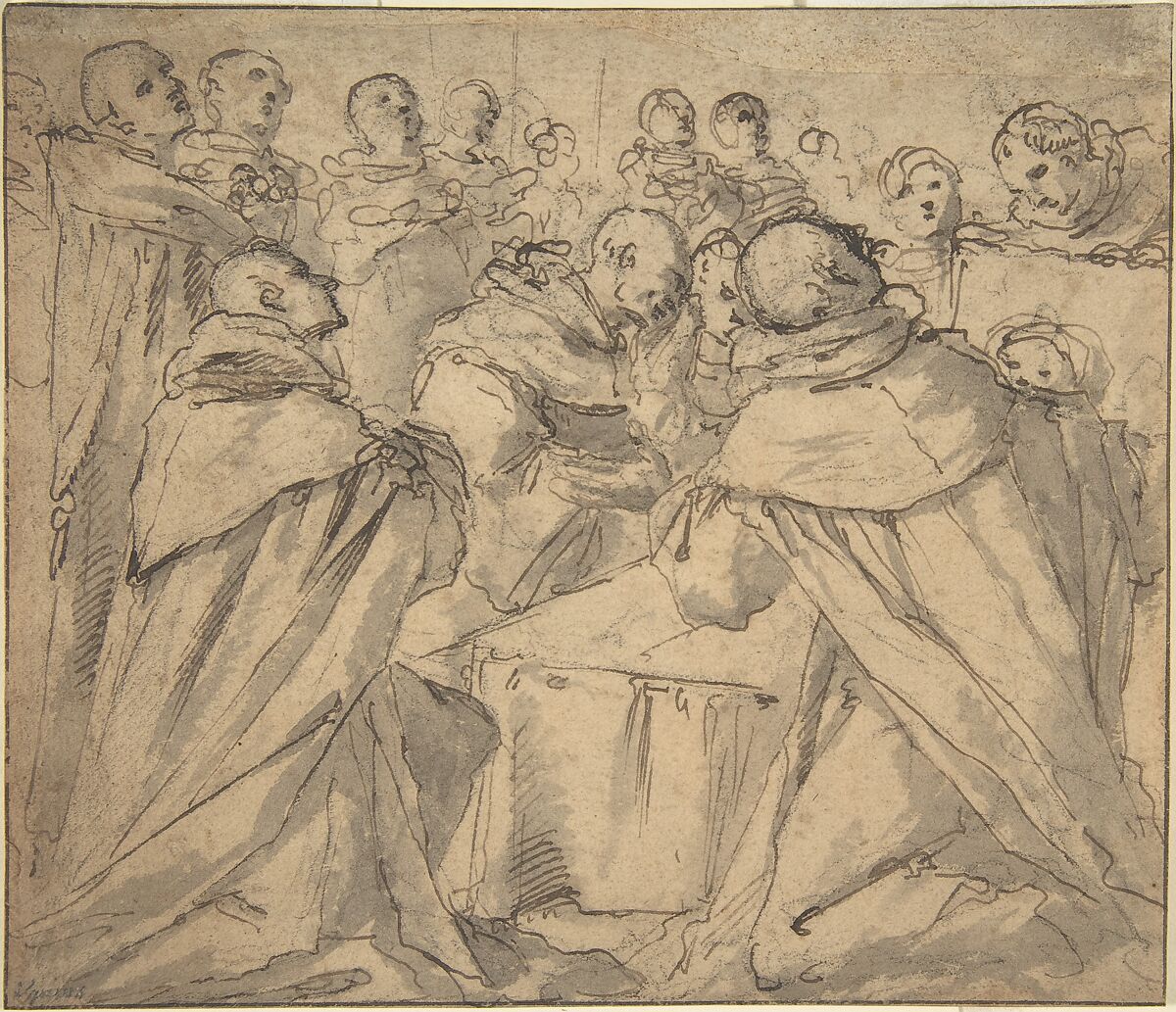 - Medium: Pen and brown ink, brush and gray wash, over black chalk