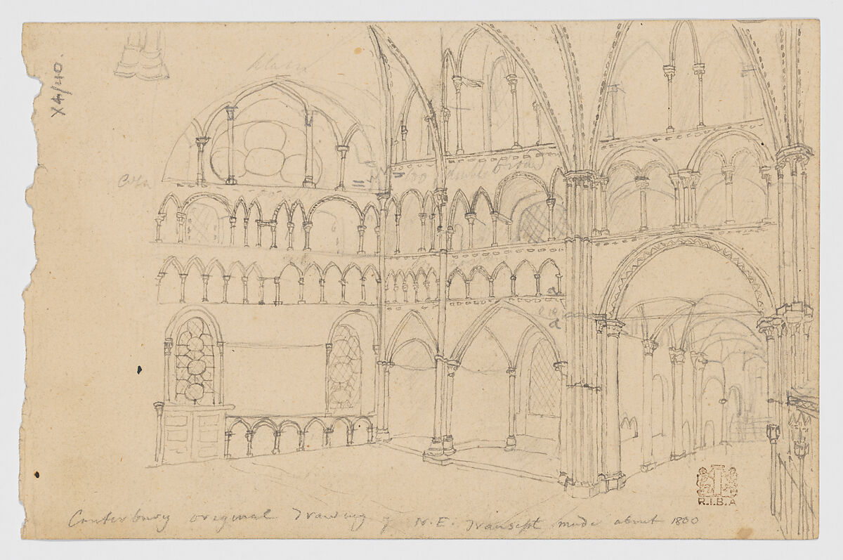 - Title: Northeast Transept of Canterbury Cathedral (recto); Architectural Details (verso)