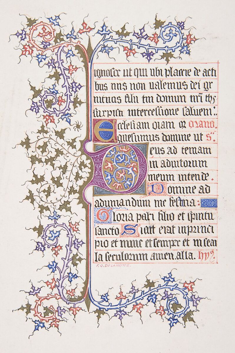 - Title: Illuminated Leaf with Initial "E" (recto); Vine Border (verso)
