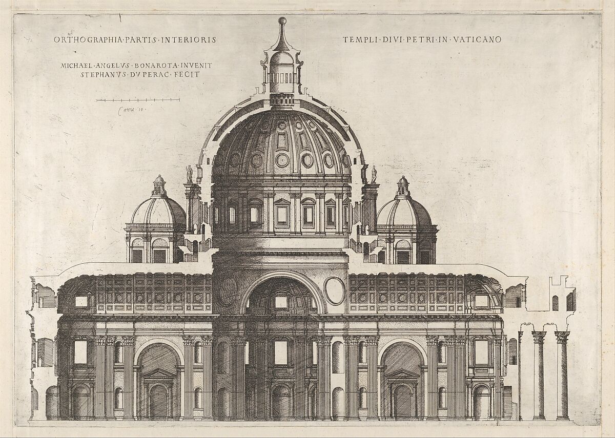 Longitudinal Section Showing the Interior of Saint Peter's Basilica as Conceived by Michelangelo (published in 1569), from "Speculum Romanae Magnificentiae"