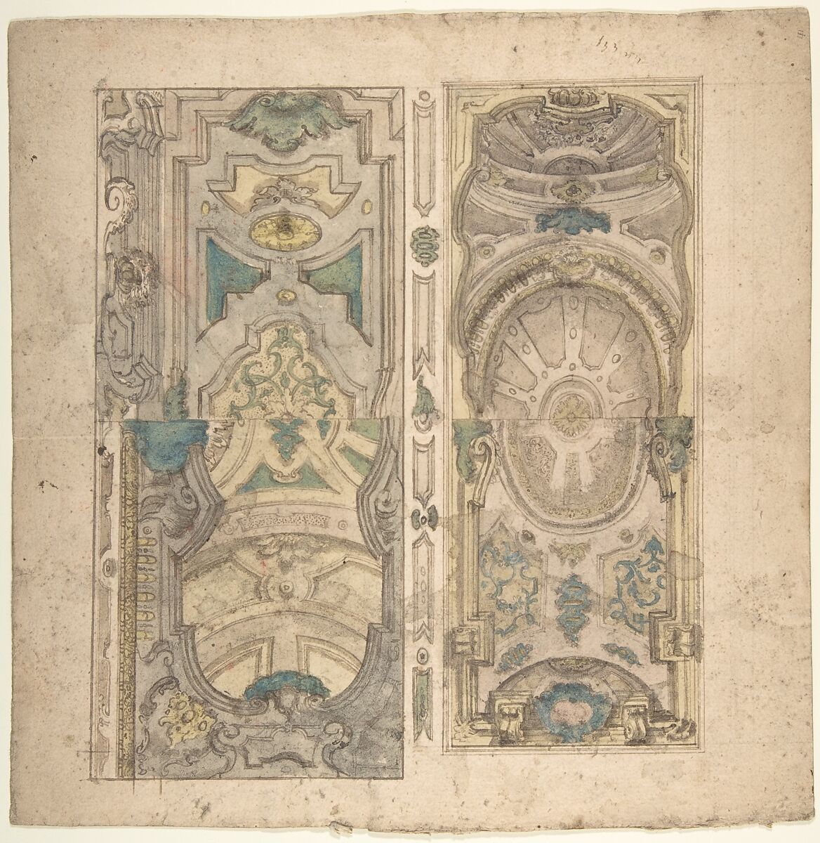 - Medium: Pen and brown ink, brush and gray wash and watercolor, over leadpoint or graphite, with ruled and compass construction. Traces of red chalk; framing lines in pen and brown ink