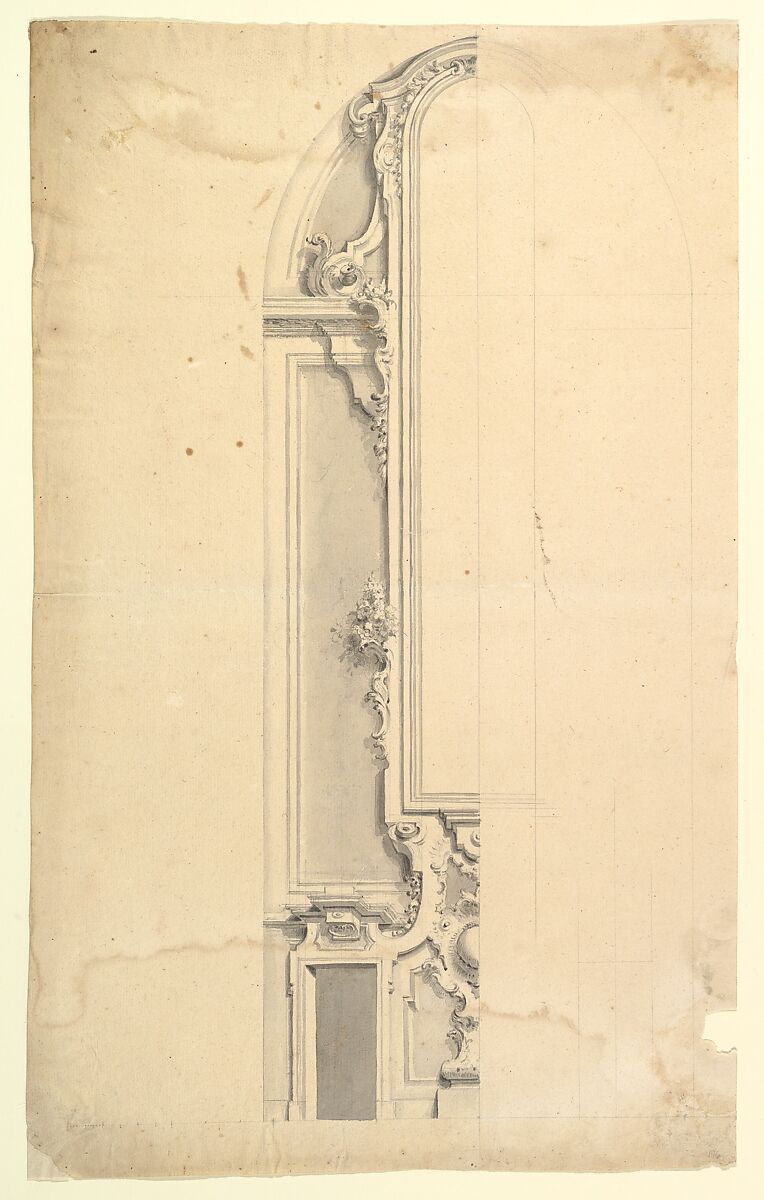 - Medium: Graphite, brush and gray wash, with ruled construction
