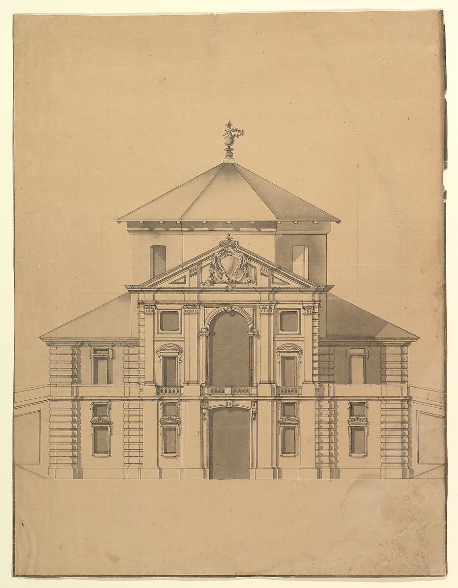 - Title: Elevation for a Building with an Octogonal Cupola and two stoy Pendimenting Facades