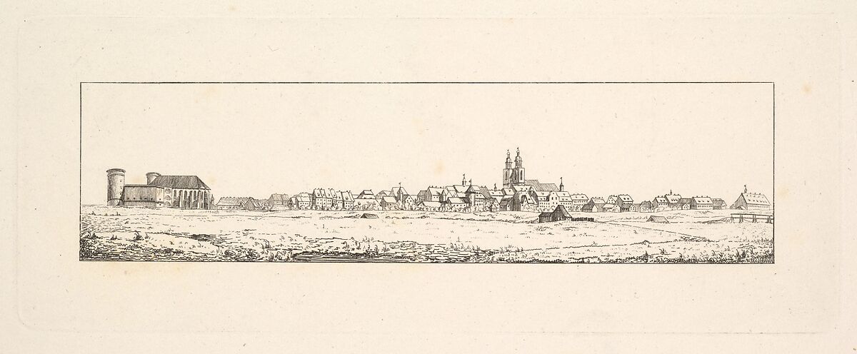 - Title: View of an Old Town with a Church and High Gabled Houses