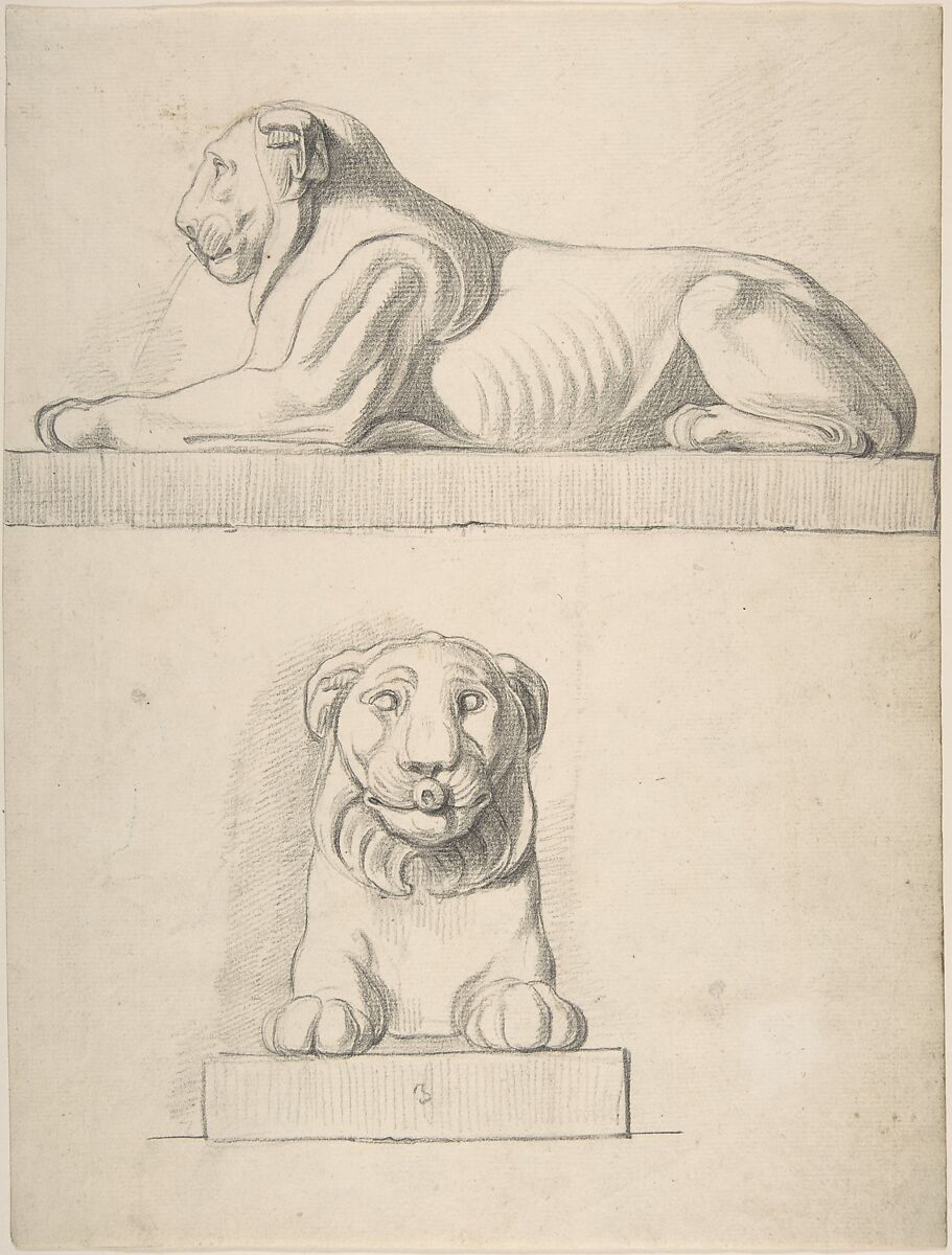 - Title: Classical Sculpture of a Lion, Front and Side Views