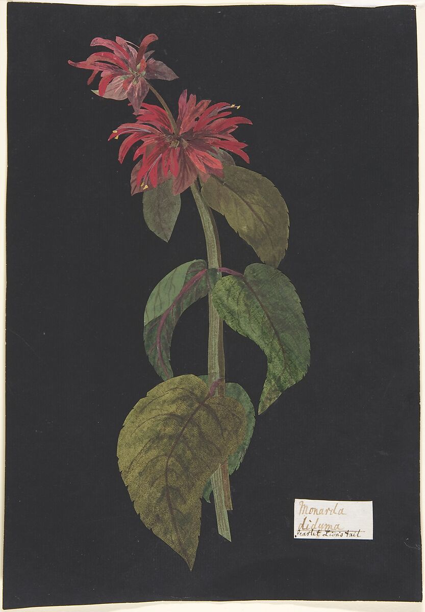The style and technique of this collage derive from Mary Delany. The Grey family was certainly in Delany’s circle; in fact, four of her works are annotated as plants she received from a "Mr. B. Grey" (now in the British Museum). Inspired by her method of cut-paper mosaic, Booth Grey additionally employed watercolor to denote details and shading in his specimens. This collage was included in a collection annotated "90 Plants / done by the / Honble Booth Grey" that descended in the Grey family. There are two candidates for its possible author as family members shared the same name and title.