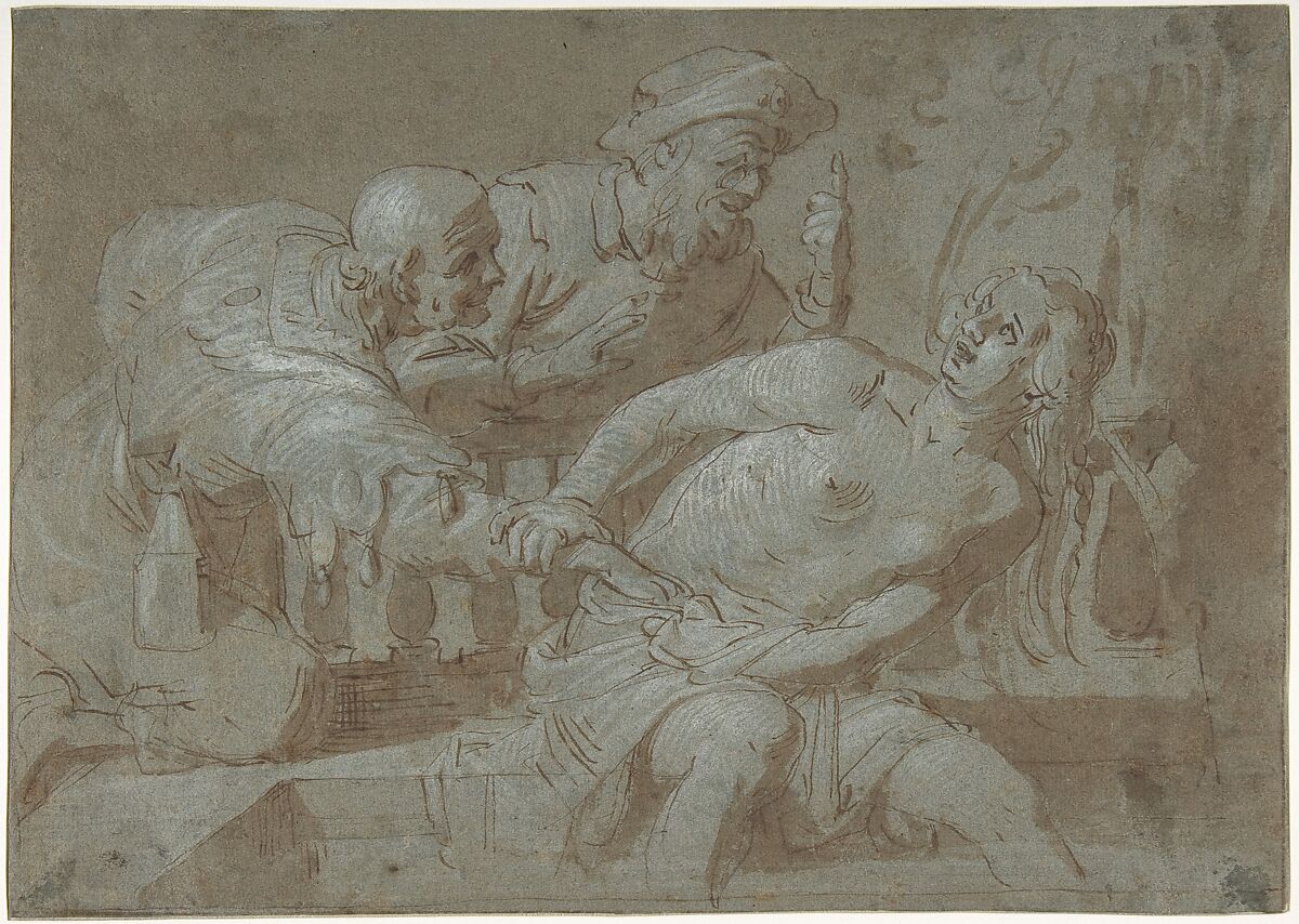 - Medium: Pen and brush and brown ink, heightened with white gouache, on blue paper; framing line in pen and brown ink, by a later hand