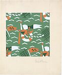 - Title: Fabric Design, nautical motif with pennants, life preservers, and rope